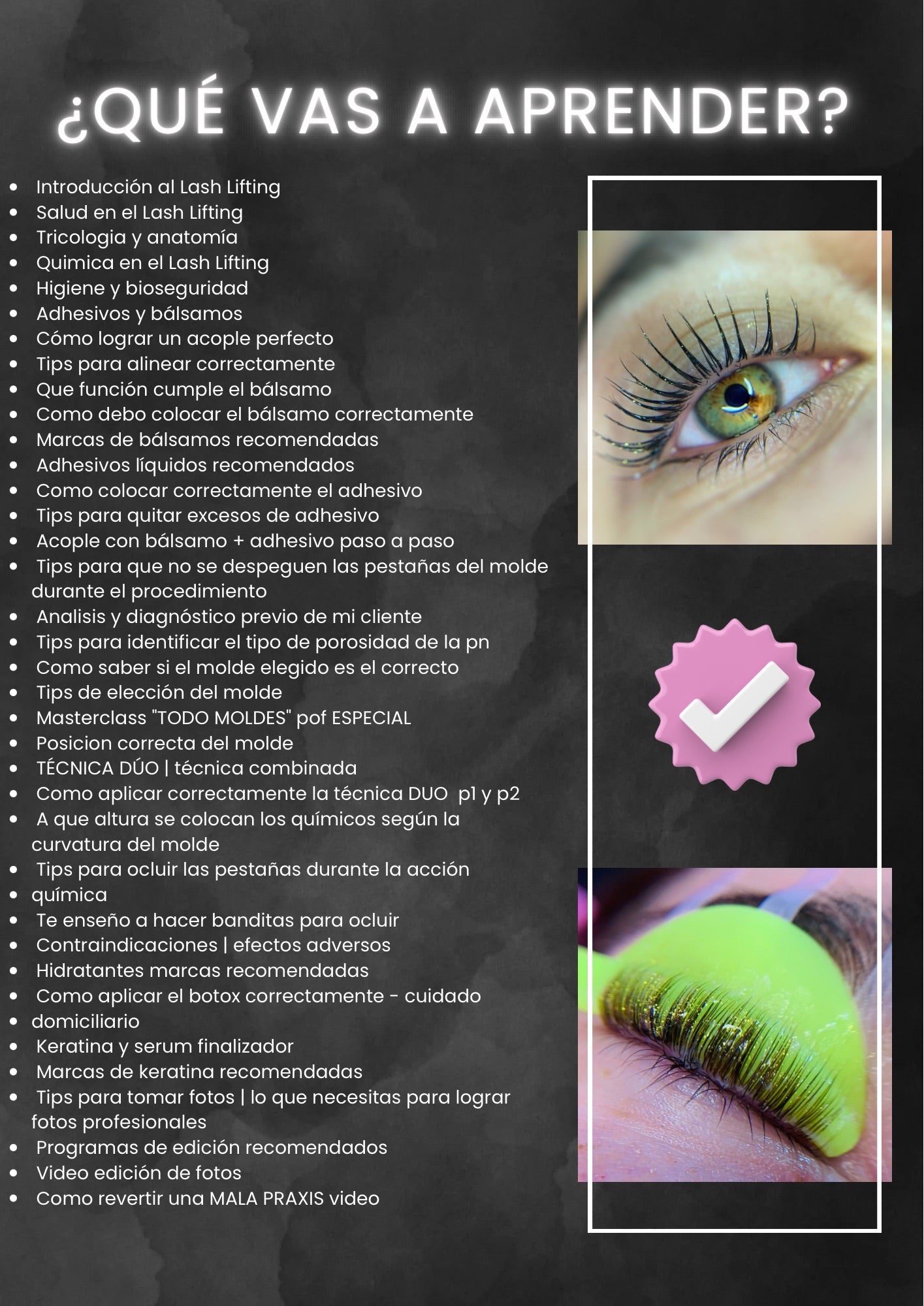 ¡Claro! Aprenderás todo lo necesario para empezar a ofrecer lifting de pestañas de forma profesional y cobrar por ello 💼💰.